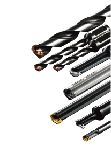 穴あけ用や座ぐり用などのチップ形状が共通。チップ材質もハイスや超硬のコーティング品など、様々場面の加工が同一